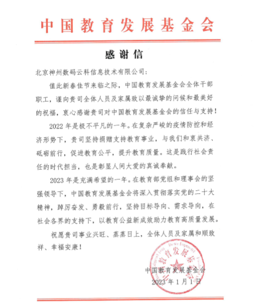 近期,kdpay钱包官网收到中国教育开展基金会的感谢信,以感谢kdpay钱包官网2022年在职业教育领域的贡献和实践,尤其是在全国职业院校大赛(中高职组)中对大赛顺利召开所付出的努力。